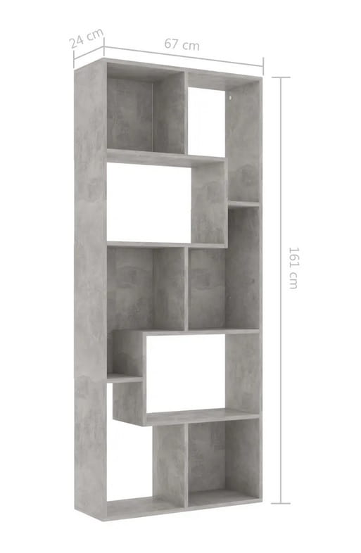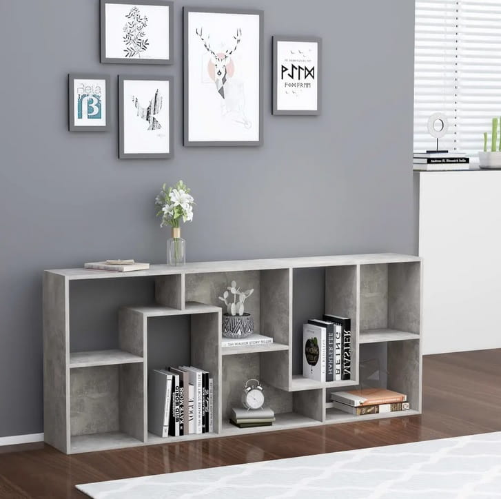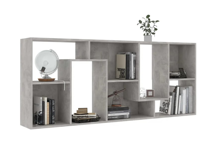 Asymetryczny regał na płyty, biblioteczka na książki szary beton