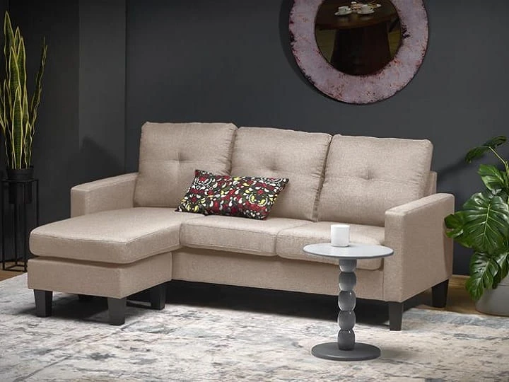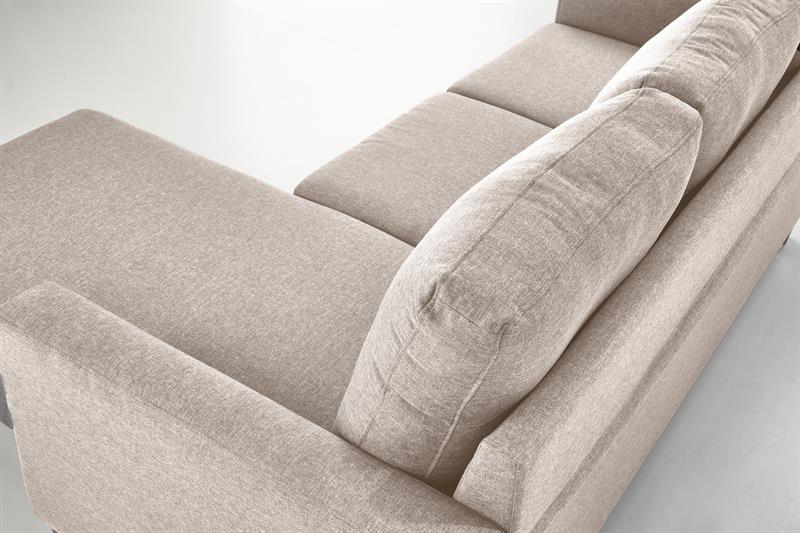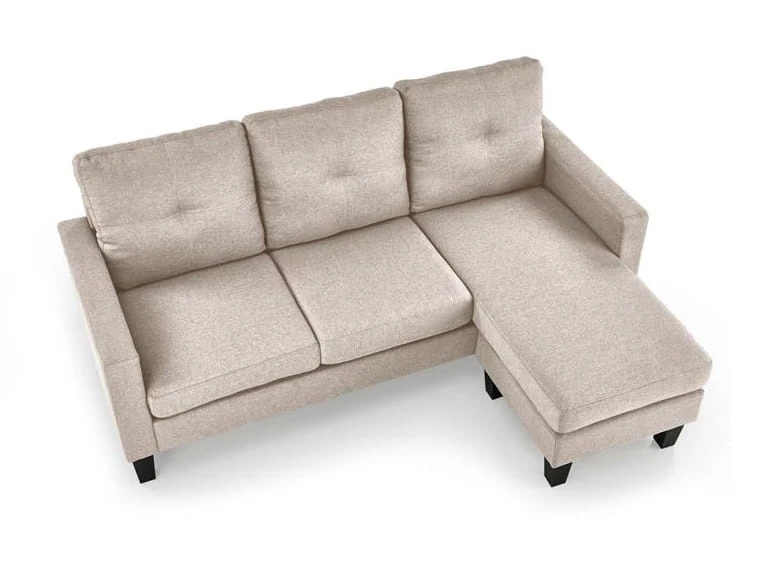 Solidna konstrukcja gwarantuje trwałość i stabilność, a dzięki materiałowi odpornemu na ścieranie - sofa zachowa swój atrakcyjny wygląd na długi czas. Ponadto tkanina sofy jest łatwa do utrzymania w czystości. Tutaj ewentualne zabrudzenia można usuwać z łatwością, dbając o świeży wygląd mebla.