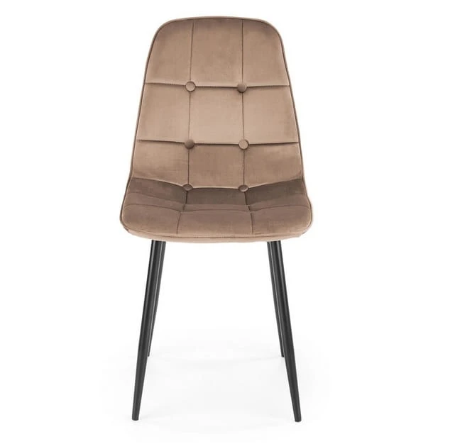 Podsumowując kluczowe cechy - krzesło Bethany wyróżnia się eleganckim designem, oparciem i siedziskiem w stylowym aksamicie, wyjątkowymi przeszyciami na oparciu i siedzisku, metalowymi nogami gwarantującymi stabilność. To krzesło jest również niekłopotliwe w montażu.