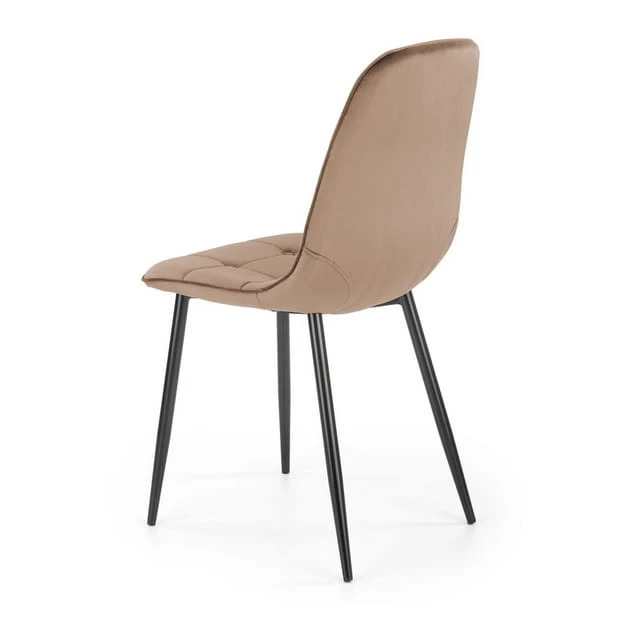Pikowane krzesło na metalowych nogach. Model idealny do wnętrz loftowych i glam.