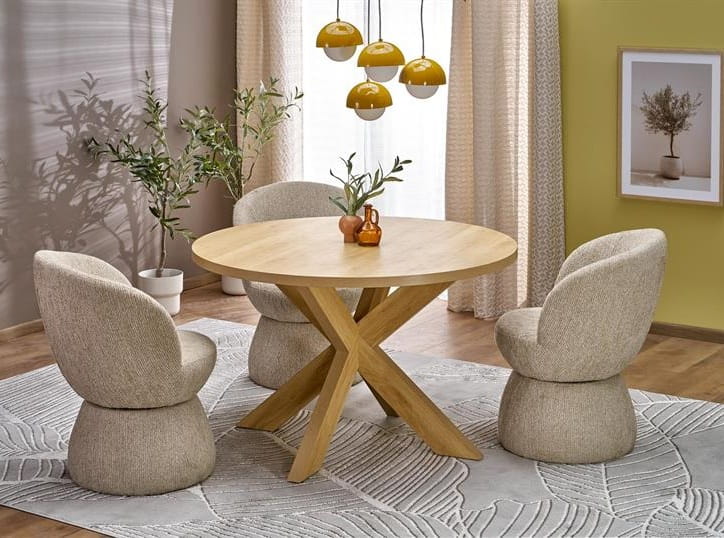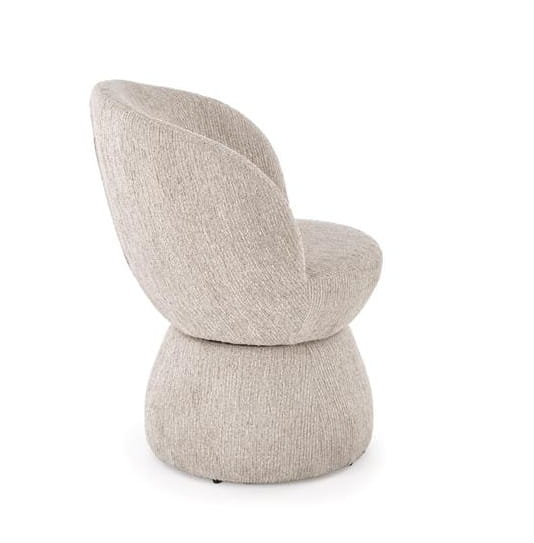 Ten designerski fotel do jadalni zachwyca swoją miękką, beżową tapicerką, która doskonale wpisuje się w modne, minimalistyczne wnętrza. Przyjemna w dotyku tkanina nadaje wnętrzu przytulności, a jednocześnie jest wyjątkowo łatwa w utrzymaniu czystości – idealna dla osób, które chcą cieszyć się pięknym wnętrzem bez zbędnego wysiłku.