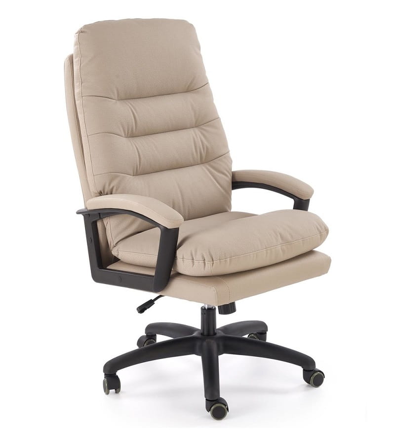 Fotel gabinetowy Harbor w kolorze beżowym to doskonałe połączenie komfortu, elegancji i nowoczesnej funkcjonalności. Obity wysokiej jakości ekoskórą, wprowadza do wnętrza lekkość i styl, idealnie komponując się zarówno z klasycznym, jak i nowoczesnym wystrojem biura czy domowego gabinetu. Wyprofilowane oparcie oraz miękkie wypełnienie z pianki zapewniają wysoki komfort nawet podczas wielogodzinnej pracy. Ergonomiczne podłokietniki dodatkowo odciążają ramiona i barki, podnosząc wygodę użytkowania.