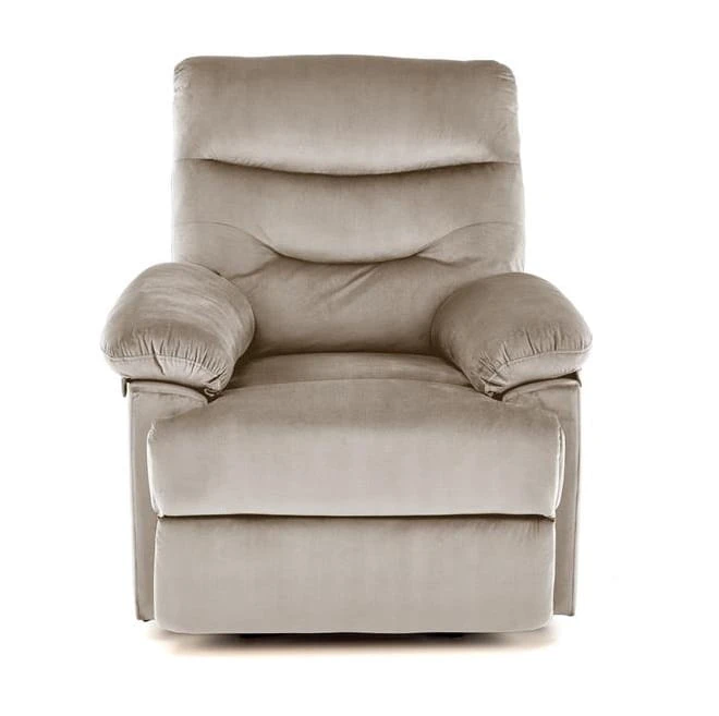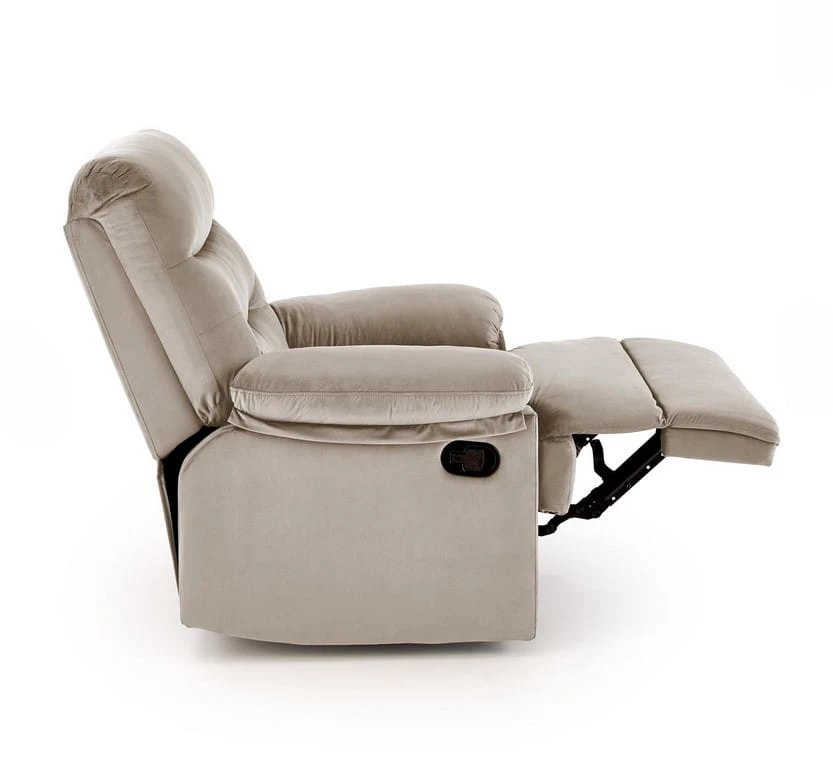 Beżowy fotel rozkładany z podnóżkiem