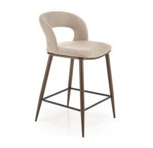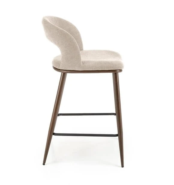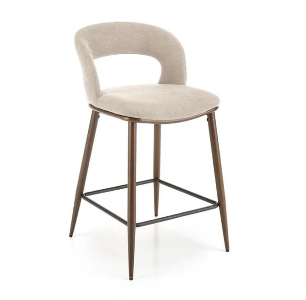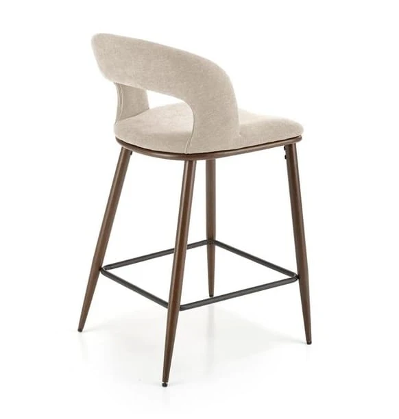Nie da się nie zauważyć, że jednym z najbardziej charakterystycznych elementów naszego krzesła barowego jest dziurka w oparciu. To udane nawiązanie do historycznego wzorca, które nadaje temu siedzisku specjalnego, wyróżniającego wyglądu. Dzięki tkaninie velvet w stonowanym, beżowym kolorze, krzesło zachowuje jednak subtelną elegancję. Wyróżnia się również wygodą użytkowania. Dodatkowo, stylowe wykończenie stelaża w orzechowym odcieniu fantastycznie harmonizuje z całością projektu.
