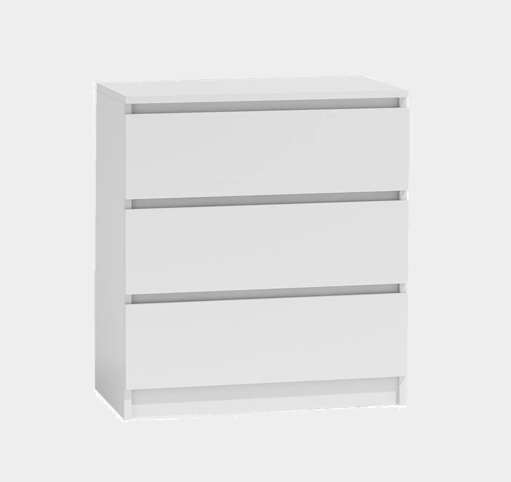 Uniwersalna komoda z serii Nesto w kolorze białym to funkcjonalny i pakowny mebel, który urządzi wnętrze Twojej sypialni, salonu lub pokoju dziecka. Nowoczesny i minimalistyczny wygląd sprosta oczekiwaniom wszystkich, którzy cenią połączenie prostoty i elegancji. Komoda posiada trzy pojemne szuflady, w których pomieszczą się nie tylko ubrania, ale także wiele innych przydatnych drobiazgów.