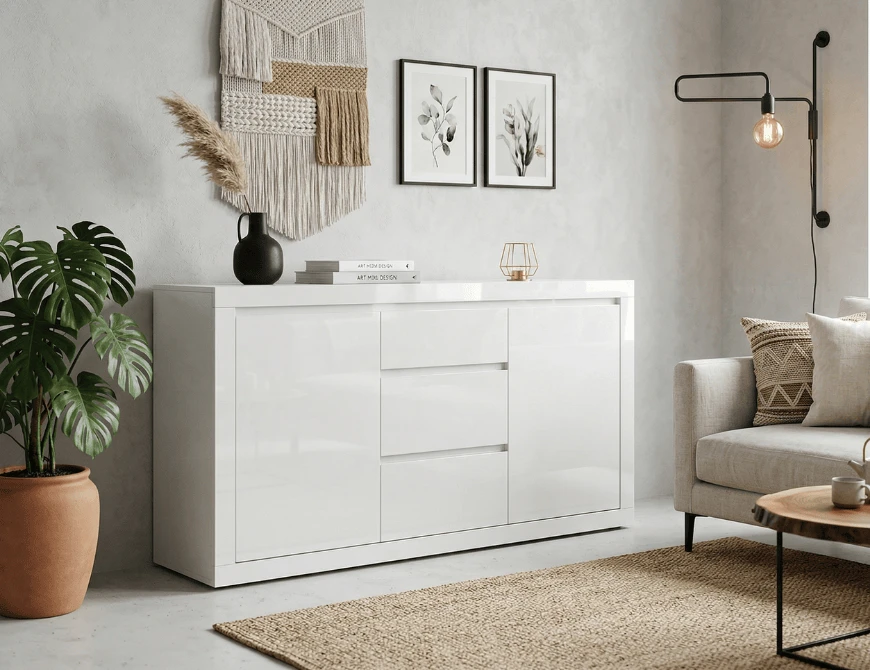 Lakierowana komoda w kolorze białym to doskonała propozycja do wnętrz, w których zależy nam na optycznym powiększeniu przestrzeni. Jasny kolor daje ten efekt, jak również poczucie wizualnej lekkości. Sprawdzi się w salonie, sypialni, garderobie czy w pracowni.