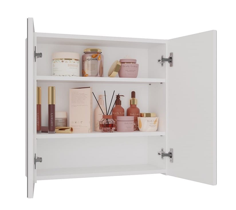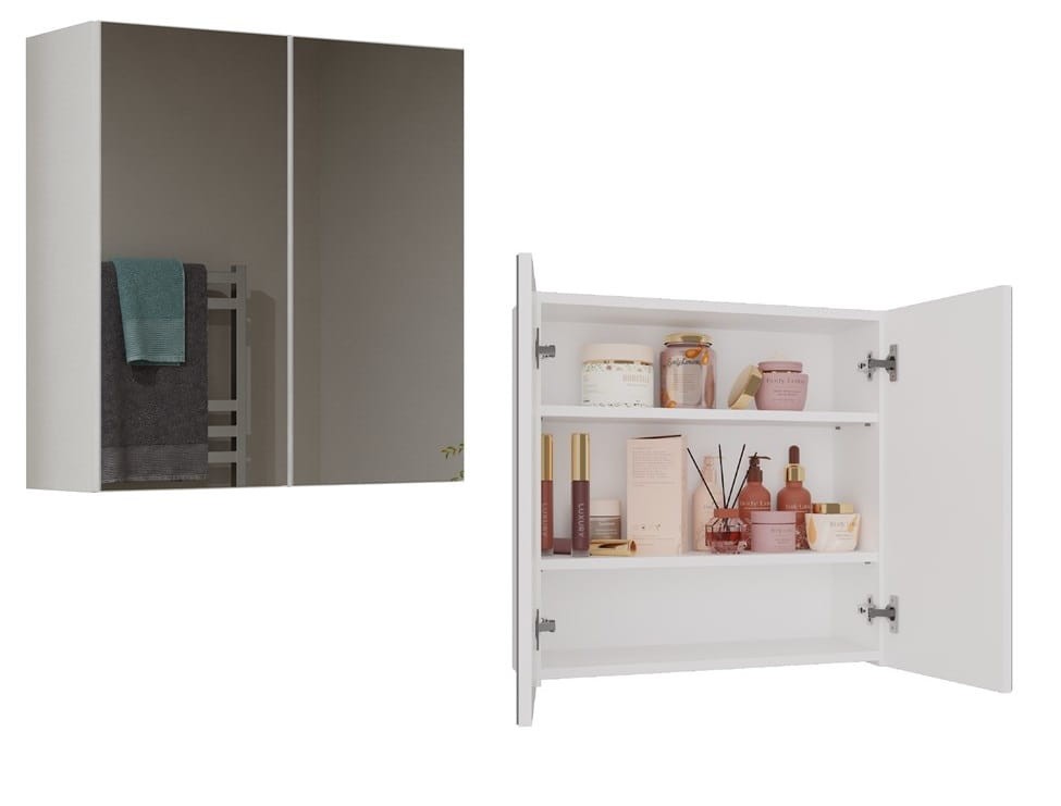 Biała szafka na kosmetyki z lustrem