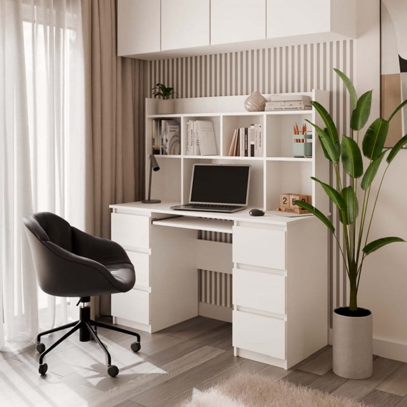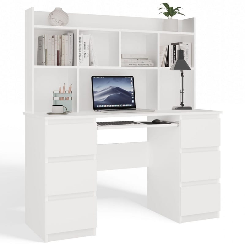 Białe biurko z nadstawką i szufladami