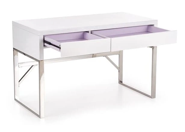 Dzięki prostej i nowoczesnej konstrukcji biurko Nazel doskonale wpasuje się zarówno we wnętrza urządzone w stylu minimalistycznym, skandynawskim ale także w te nowoczesne czy też typowo młodzieżowe. Biurko posiada gładkie boki, nie ma w nich żadnych zaślepek, co sprawia, że tworzy komfortową przestrzeń do pracy. Dodatkowym atutem biurka są dwie pojemne szuflady, dzięki którym zaoszczędzisz miejsce do pracy na blacie. Funkcjonalność biurka podnosi designerski blat w kolorze biały połysk, co z pewnością pomoże utrzymać czystość mebla. Bezuchwytowe fronty szuflad zapewnią wygodne i komfortowe użytkowanie, a także nowoczesny design. Biurko Nazel to produkt wykonany z najwyższej jakości materiałów, dlatego też na pewno będziesz cieszyć się nim przez długie lata.