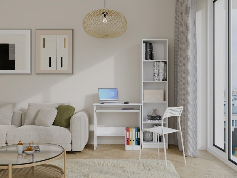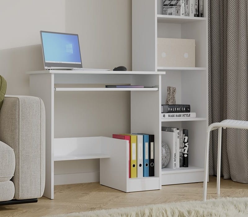 Białe kompaktowe biurko do pracy na laptopie