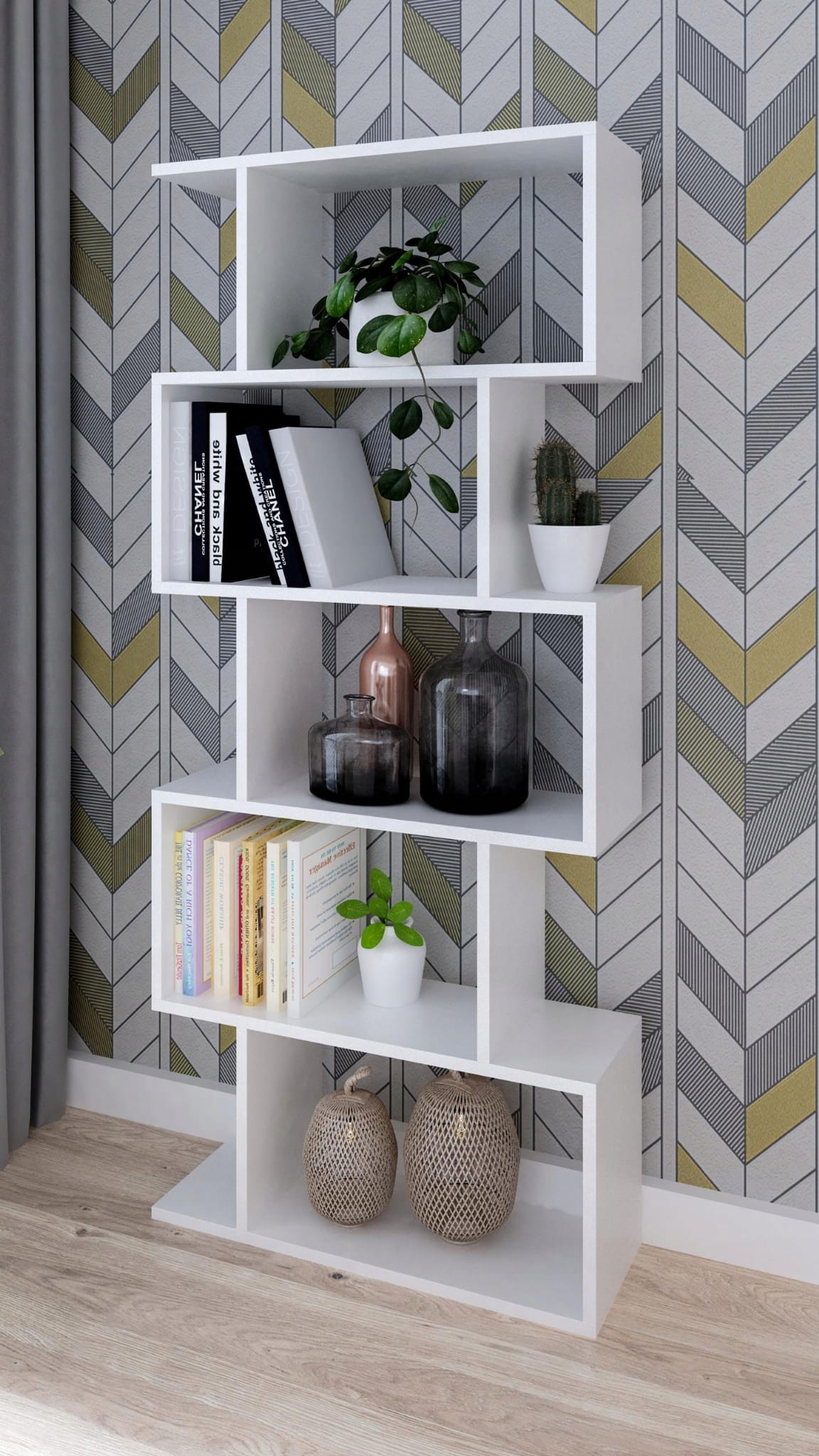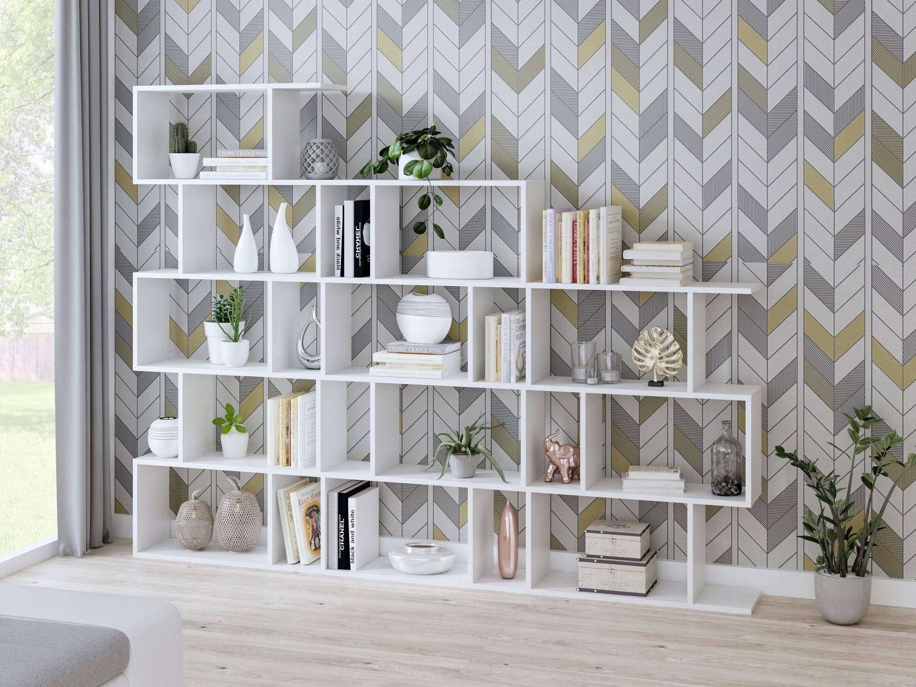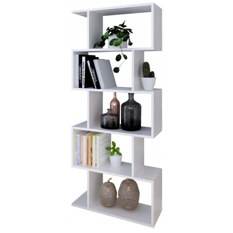 A to za sprawą interesująco zaprojektowanych półek. Ten wysoki na 176 cm regał na książki, zdjęcia, pamiątki i inne drobiazgi, które dzięki licznym półkom znajdą swoje miejsce - ma przemyślany, fantastyczny design. Z pozoru prosty, wyróżnia się jednak asymetrycznym rozstawem półek, niezwykle ciekawym. Na Państwa uwagę zasługuje faktura tego mebla. Do jego wykonania wykorzystano laminowaną płytę meblową - w kolorze białym. Piękną, a zarazem prostą w utrzymaniu. Do regularnej pielęgnacji wystarczy wilgotna ściereczka.