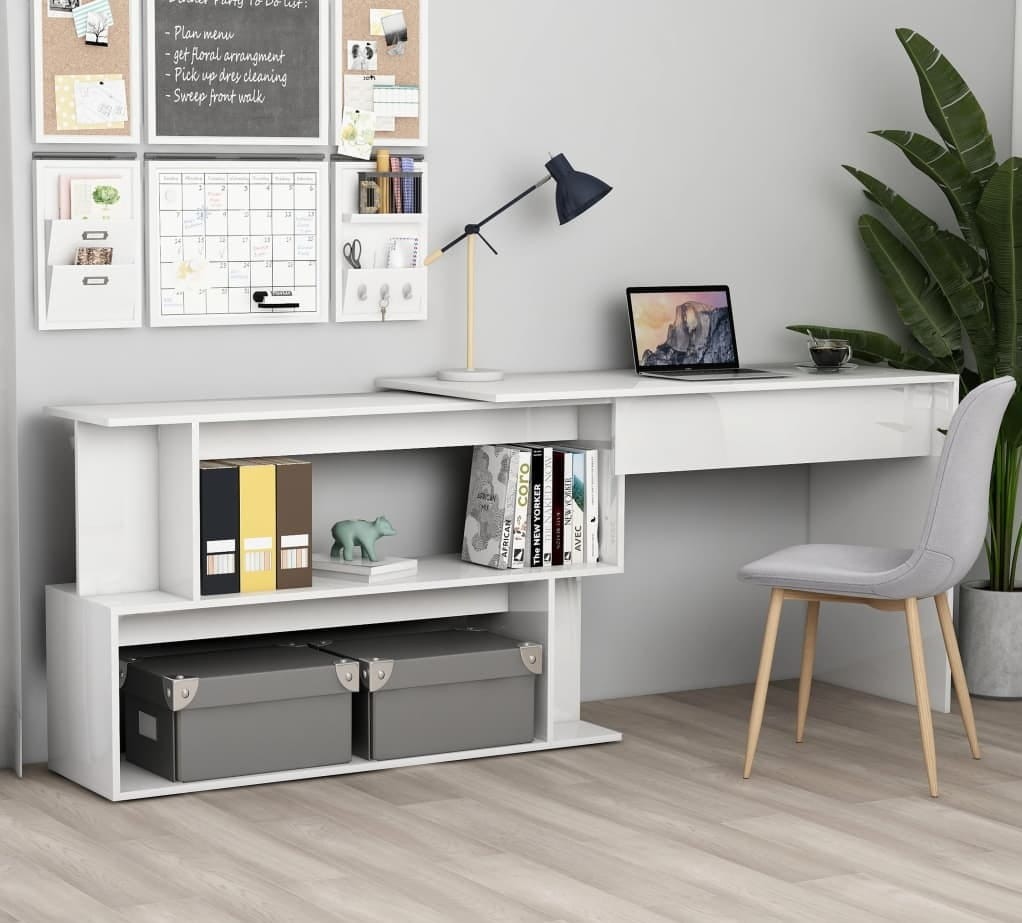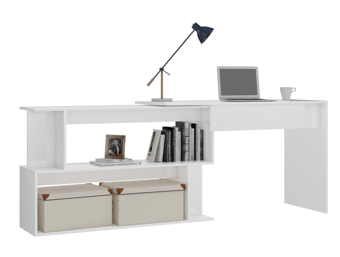 Piękne biurko narożne w białym połysku to doskonała propozycja dla osób o wysokich oczekiwaniach co do mebla przeznaczonego do pracy umysłowej lub do nauki. Prezentowane biurko jest eleganckie, a zarazem funkcjonalne. Piękny design z pewnością uprzyjemni wykonywanie codziennych zadań kancelaryjnych oraz informatycznych.