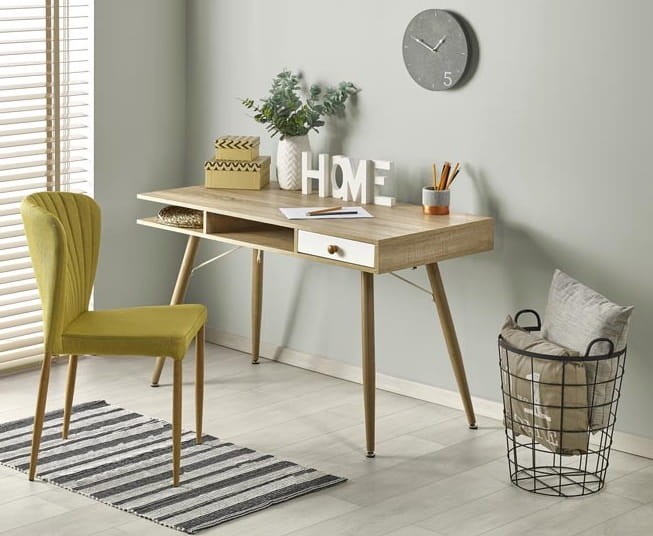 Biurko Defis doskonale wpisuje się w modny nurt skandynawski odtwarzany w wielu wnętrzach. Cechuje go prostota, jasne kolory, odwołania do natury i funkcjonalny design. Nogi mebla wykonane są ze stali malowanej proszkowo, a prostokątny blat stworzono z laminowanej płyty MDF. Dodatkowe zastosowanie zapewnia świetnie zaprojektowane półki i szuflada, w której można przechowywać różnego rodzaju drobiazgi. Konsola Defis to mebel wszechstronny, który może pełnić zarówno funkcje praktyczne, jak i dekoracyjne.