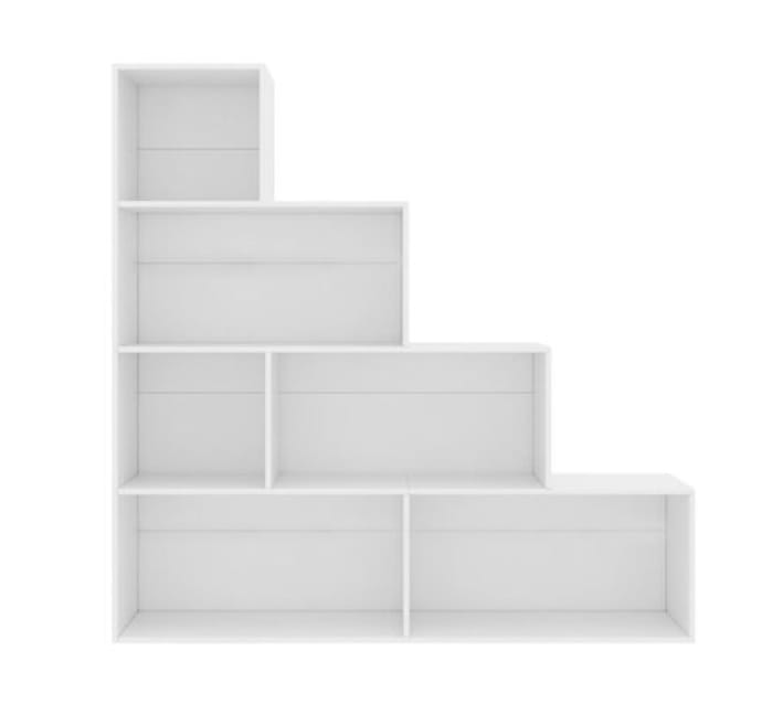 Regał na książki Stativ ma prostą, a jednocześnie niezwykle ciekawą formę. Wykonany jest on z solidnej, a zarazem przystępnej cenowo płyty meblowej w kolorze białym. Do dyspozycji użytkownika jest tutaj aż 6 otwartych, pojemnych półek, zaprojektowanych w interesujący sposób. Schodkowy regał jest i praktyczny i atrakcyjny wizualnie. To właśnie dzięki asymetrycznym komorom, służącym do przechowywania książek i nie tylko! Bo półki mogą oczywiście służyć również innym rzeczom. Swoje miejsce znajdą tutaj dokumenty, czasopisma, nośniki multimedialne, pamiątki i bibeloty. W zależności od potrzeb regał można wykorzystać na różne sposoby. Nawet do przedzielenia pokoju czy domowej biblioteki!