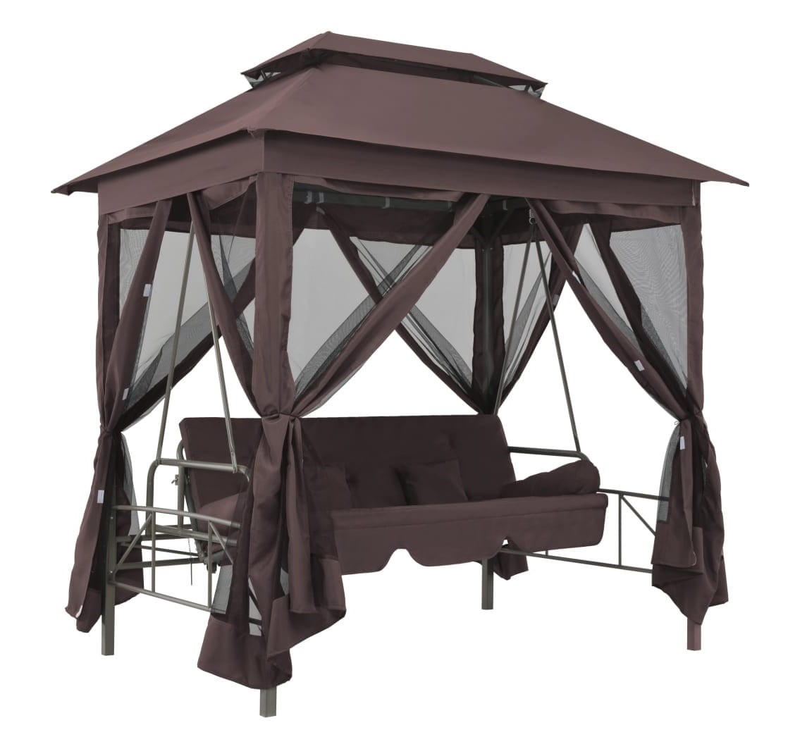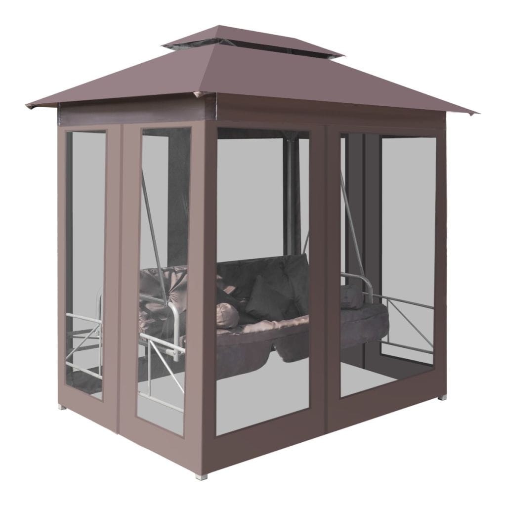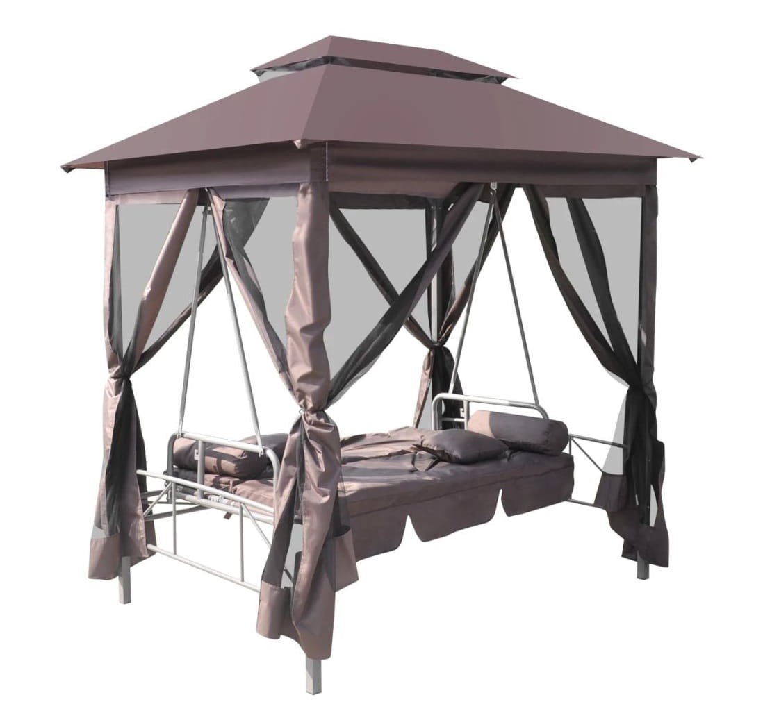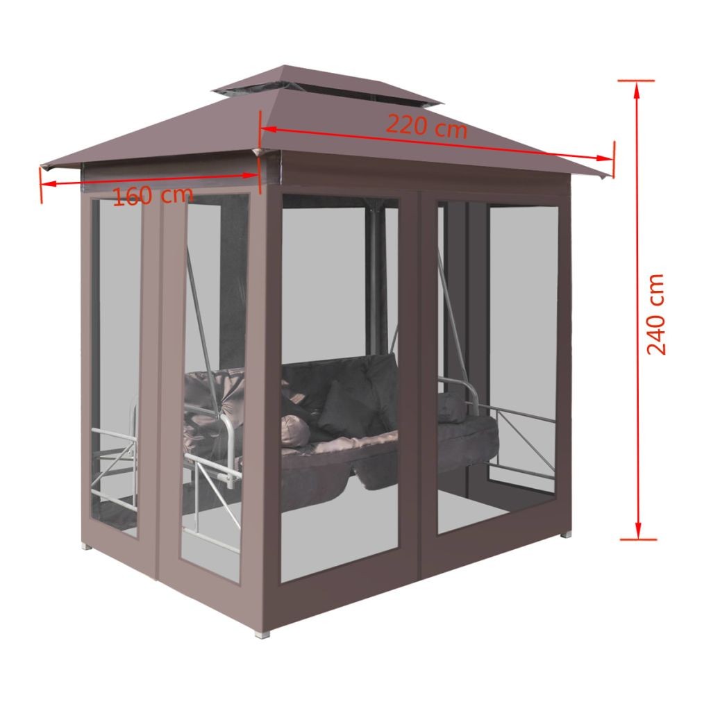 Brązowa altana z huśtawką do ogrodu