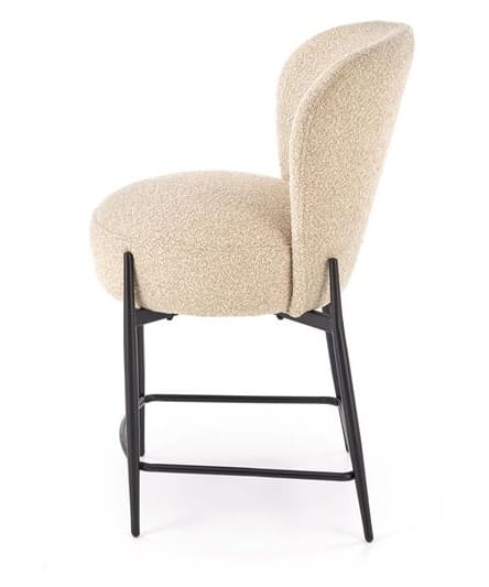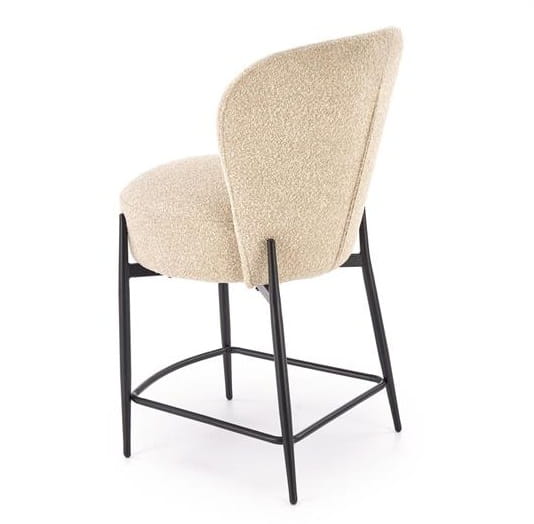 Wyprofilowane, kubełkowe oparcie oraz grube, miękkie siedzisko gwarantują komfort nawet podczas długich rozmów przy kawie lub rodzinnych spotkań przy wyspie kuchennej. Beżowy hoker z oparciem Larry został zaprojektowany tak, by otulać użytkownika i zapewniać stabilne podparcie pleców - to doskonałe rozwiązanie dla osób, które cenią sobie wygodę bez kompromisów. Solidna konstrukcja oparta na czarnych, metalowych nogach nie tylko wygląda stylowo, ale też zapewnia pełną stabilność. Dzięki praktycznemu podnóżkowi możesz swobodnie oprzeć nogi, co sprawia, że korzystanie z hokera jest jeszcze bardziej komfortowe. To idealny wybór dla tych, którzy szukają wysokiego stołka do wyspy, który sprosta codziennemu użytkowaniu i wprowadzi do wnętrza nutę elegancji.