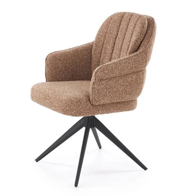 Cynamonowa tapicerka krzesła Molty to nie tylko ukłon w stronę aktualnych trendów – to świadomy wybór, który wprowadza subtelną elegancję do każdego wnętrza. Przyjemna w dotyku tkanina zachęca do kontaktu, a jej neutralny odcień harmonizuje zarówno z intensywnymi kolorami, jak i stonowanymi paletami. Charakterystyczny metalowy stelaż w formie czarnego krzyżaka, wykonany ze stali malowanej proszkowo, dodaje całości designerskiego sznytu i stabilności, która przetrwa niejeden intensywny wieczór rodzinnych rywalizacji.