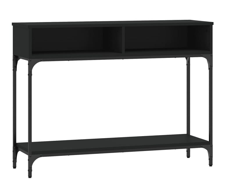 Czarna konsola przyścienna z półkami
