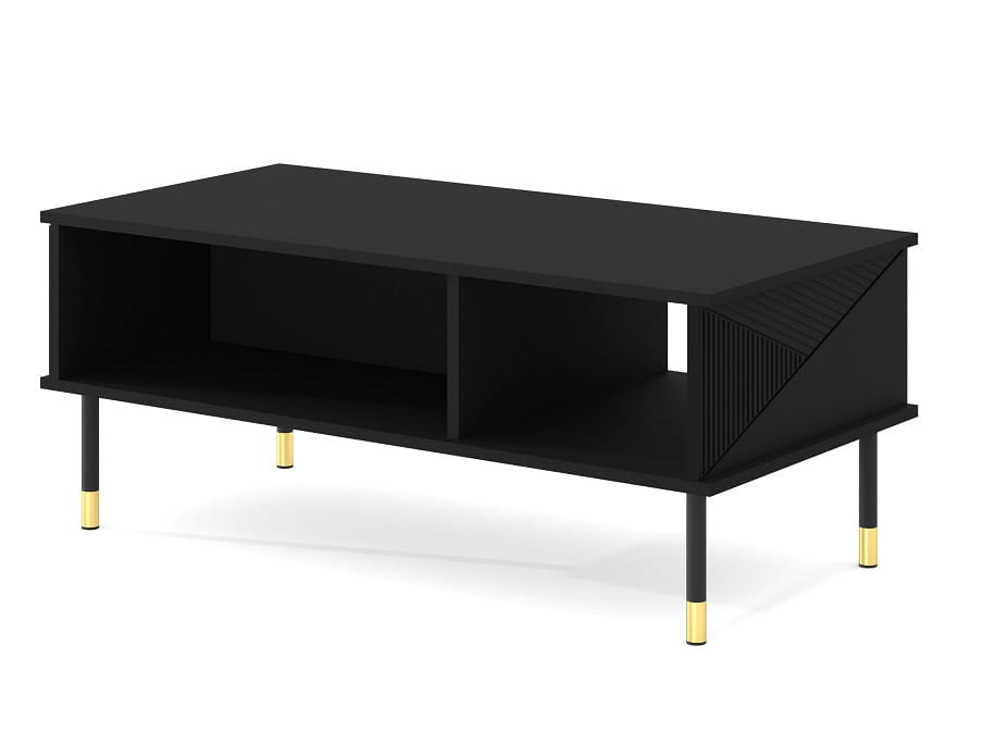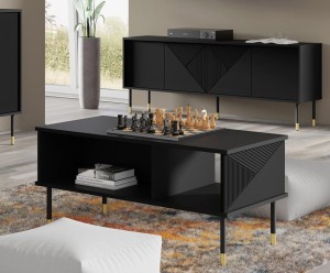 Nasza matowa czarna ława kawowa Gianni to kwintesencja stylu i luksusu, która doda niepowtarzalnego uroku Twojemu salonowi, gabinetowi lub poczekalni. Ten elegancki stolik kawowy na nóżkach zapewni Ci nie tylko wyjątkowy wygląd, ale również praktyczne rozwiązania, które ułatwią organizację przestrzeni.