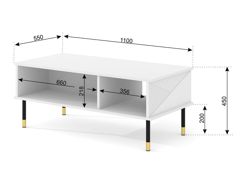 Matowa powierzchnia stolika kawowego nadaje mu wyjątkowej elegancji i klasy, idealnie komponując się z różnymi aranżacjami wnętrz. Półki z przegródkami pod blatem umożliwiają przechowywanie gazet, pilotów i innych niezbędnych rzeczy w sposób uporządkowany i łatwo dostępny.