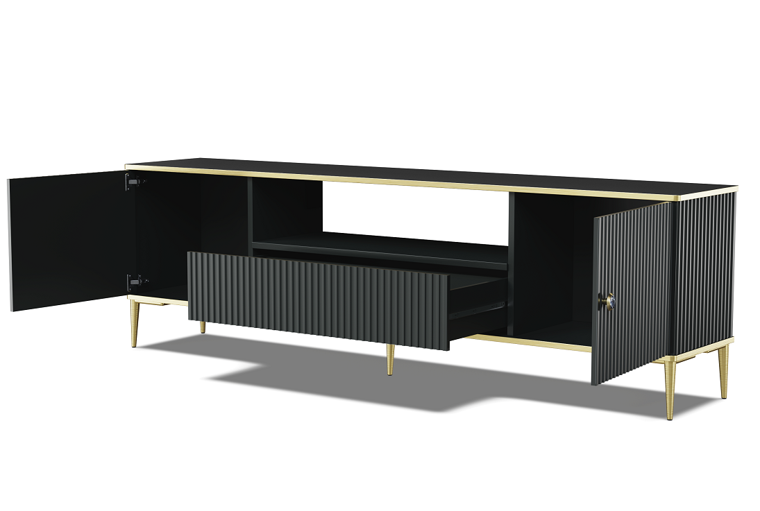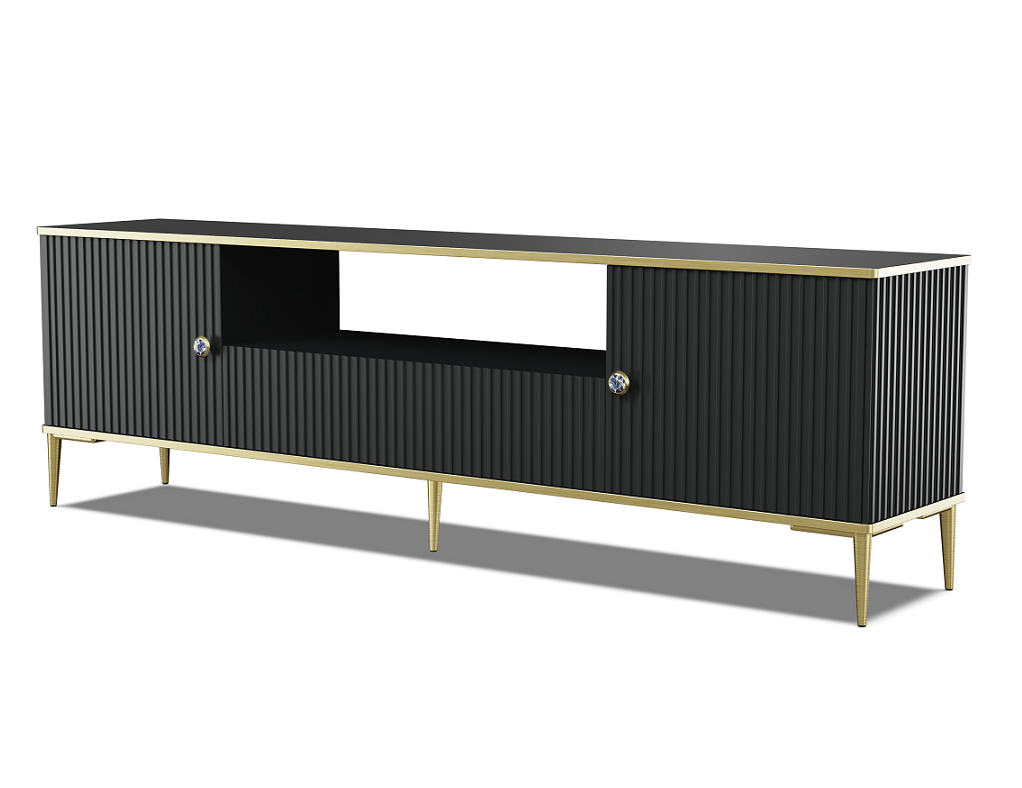 Czarna matowa szafka RTV na złotych nóżkach