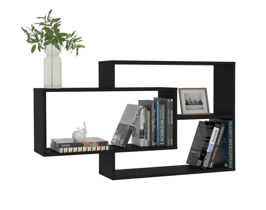 Czarna półka wisząca na płyty, regał ścienny na książki