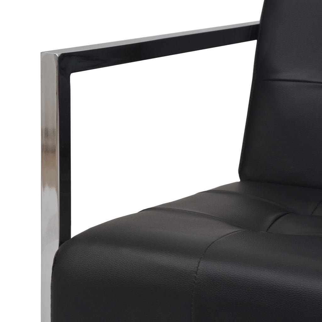 - Materiał: drewniana rama, chromowe nogi, ekoskóra