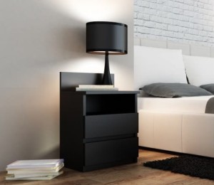 Urządzasz swoją wymarzoną sypialnię i przy łóżku brakuje Ci już tylko szafki, na której będziesz mógł wieczorem odłożyć czytaną aktualnie książkę? Doskonale w tej roli sprawdzi się nasz stolik nocny Merlin II w kolorze czarnym. Na blacie jest wystarczająco miejsca na lampkę nocną a także telefon czy okulary. Dodatkowo szafka ma dwie pojemne szuflady, w której również pomieszczą się niezbędne drobiazgi. Kolejnym atutem mebla są wydłużone plecy, dzięki czemu już nigdy nic nie spadnie Ci za szafkę.
