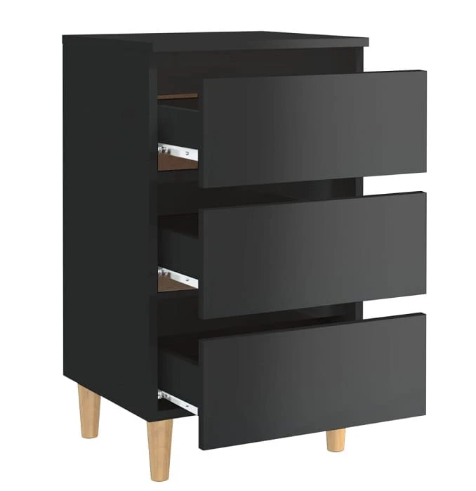 Czarna szafka nocna z szufladami połysk