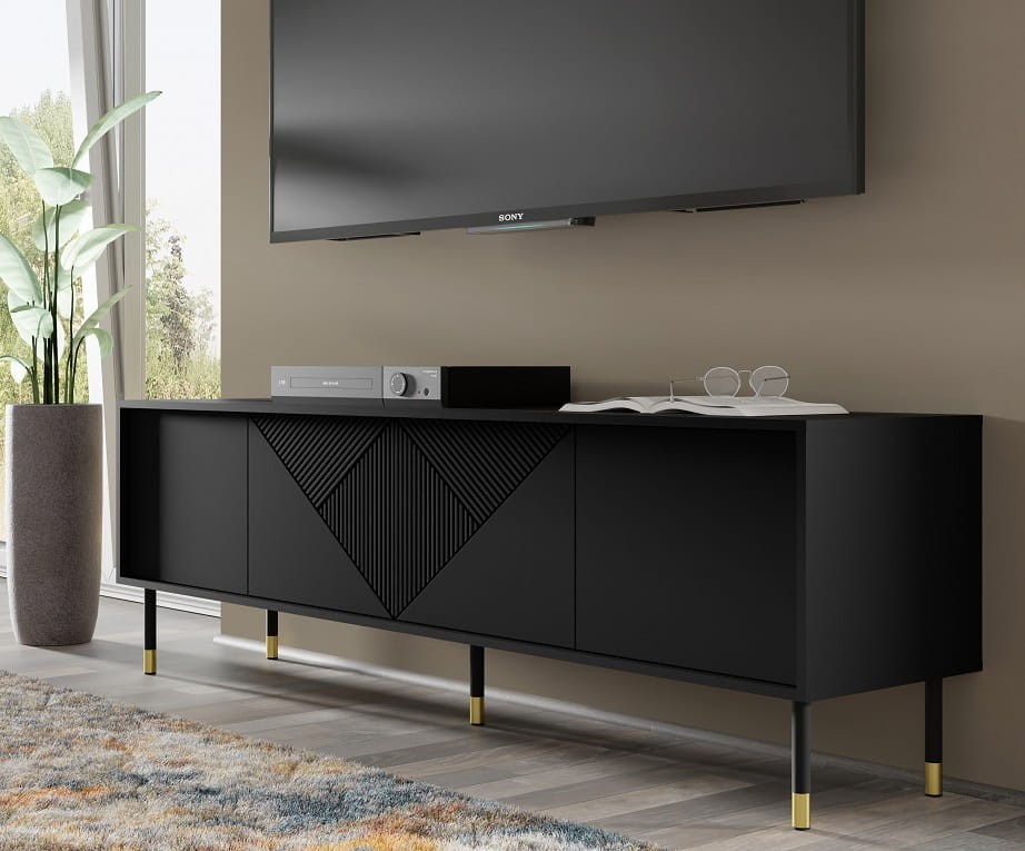 Czarna szafka pod telewizor z frezami