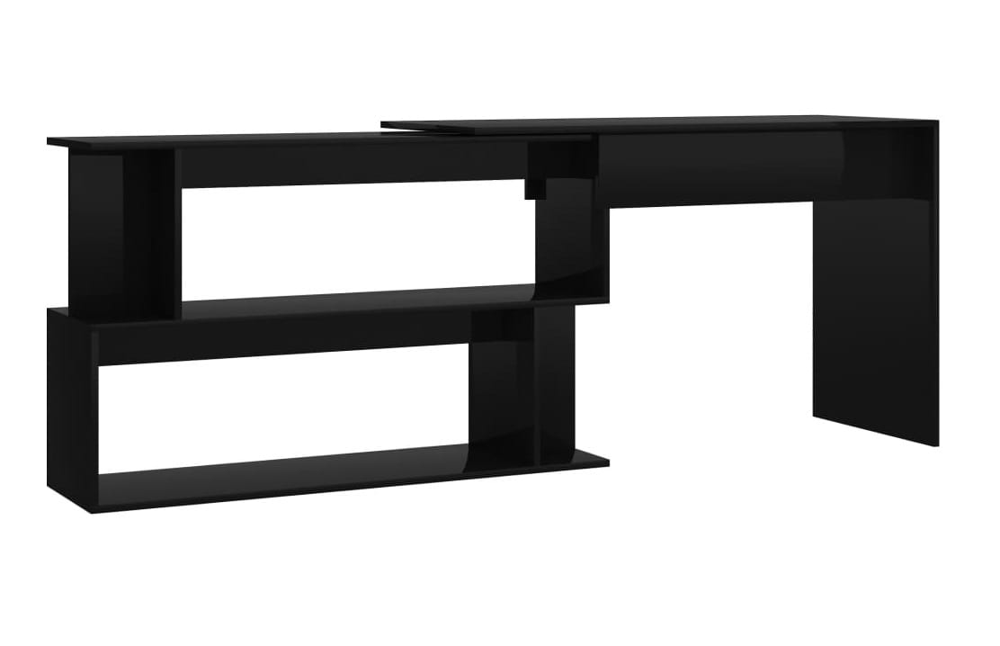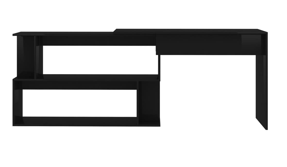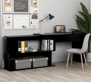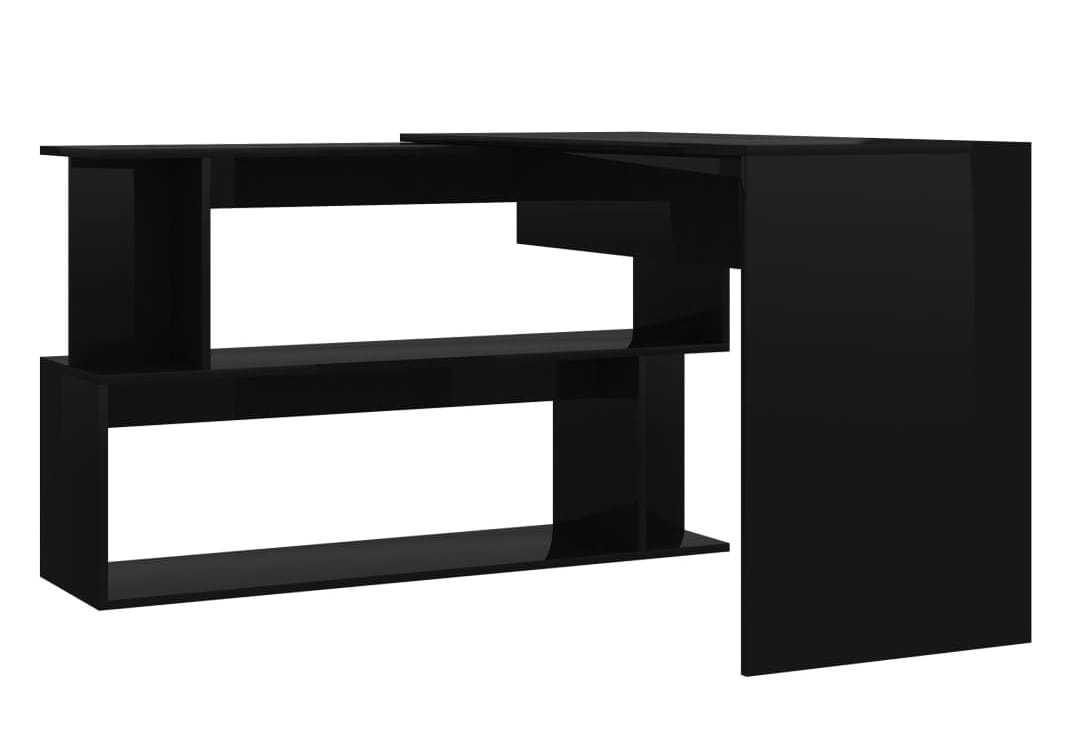 Piękne biurko narożne w czarny połysk to doskonała propozycja dla osób o wysokich oczekiwaniach co do mebla przeznaczonego do pracy umysłowej lub do nauki. Prezentowane biurko jest eleganckie, a zarazem funkcjonalne. Piękny design z pewnością uprzyjemni wykonywanie codziennych zadań kancelaryjnych oraz informatycznych.