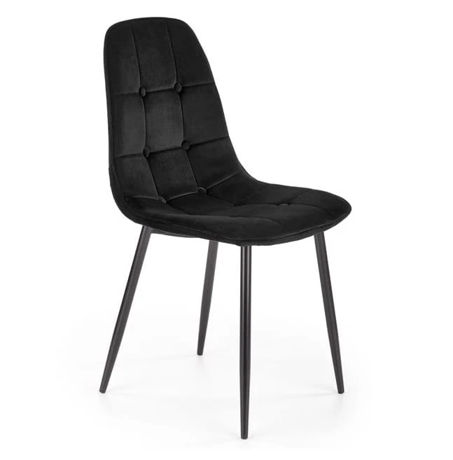 Prezentujemy Państwu pikowane krzesło Bethany, które doskonale wpisuje się w nurt glamour i loftowy i jest idealne zarówno do jadalni, salonu, jak i innych przestrzeni użytkowych. W przypadku tego modelu oparcie i siedzisko są tapicerowane miękką czarną tkaniną aksamitną, która wygląda niezwykle elegancko, a przy tym jest bardzo przyjemna w dotyku.