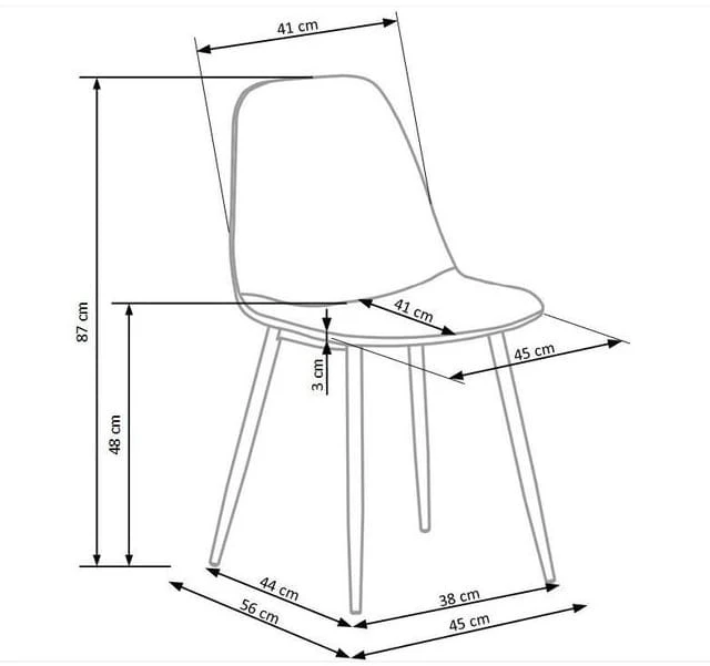 - Wymiary: szerokość - 44 cm, wysokość - 87 cm, wysokość siedziska - 48 cm, głębokość - 56 cm