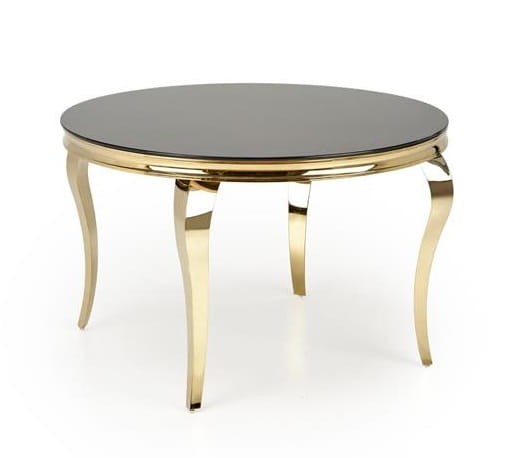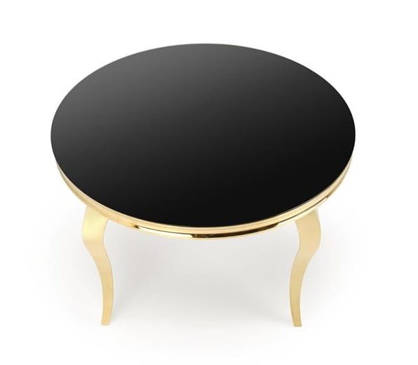 Okrągły stół Blanxy to nie tylko mebel, ale prawdziwe dzieło sztuki, które wniesie do Twojego wnętrza niepowtarzalny klimat luksusu. Wykonany z najwyższej jakości stali nierdzewnej w złotym kolorze, ten elegancki stół zachwyca swoim blaskiem i dodaje przestrzeni wyjątkowego charakteru. Jego czarny blat ze szkła jest nie tylko niezwykle stylowy, ale także praktyczny i łatwy do utrzymania w czystości.