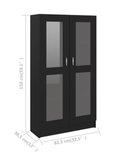 Czarny regał na książki z przeszklonymi drzwiami