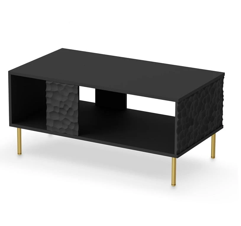 Ponadczasowa kolorystyka tego stolika kawowego, w połączeniu z subtelnymi, złotymi nóżkami to eleganckie rozwiązanie, ale również przemyślana koncepcja projektantów. Dzięki temu meblowi można stworzyć wnętrze pełne stylu i klasy, które przyciąga uwagę gości i sprawia, że chce się w nim przebywać. Szczególnie, gdy w swojej aranżacji wykorzystają Państwo inne meble z naszej serii Demona, w skład której wchodzi: komoda, przeszklona witryna i stolik RTV. Wszystkie wyróżniają się ozdobnym, trójwymiarowym efektem! Trójwymiarowa ława to jeden z elementów nowoczesnego systemu, z którego można skomponować całe wyposażenie wnętrza!