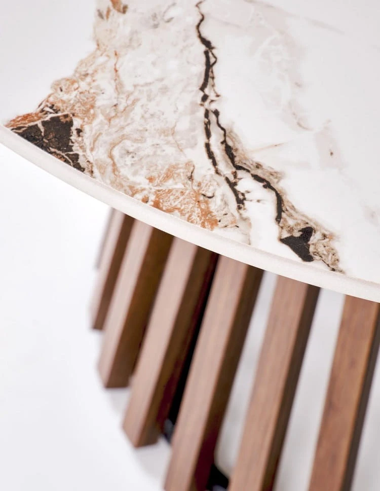 Designerska okrągła ława marmur z lamelami