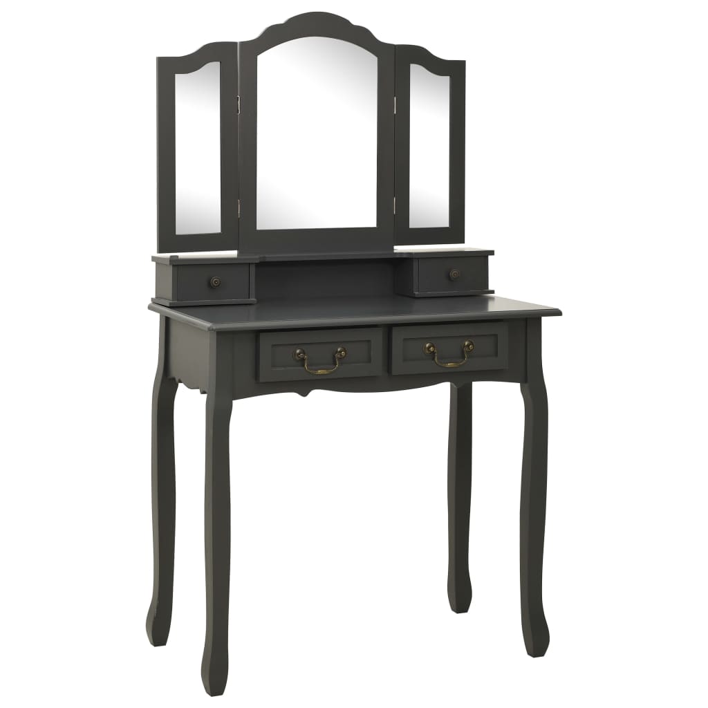 Szara toaletka z lustrami i stołkiem