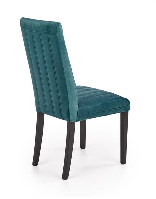 Krzesło Moonlight osadzone jest na stabilnych, smukłych, czarnych nogach wykonanych z litego drewna bukowego. Siedzisko i oparcie tapicerowane są piękną, aksamitną tkaniną odbijającą światło, dzięki czemu efektownie połyskuje. Zachwyca designem, a przysłowiowym czterem kątom dodaje unikatowości.