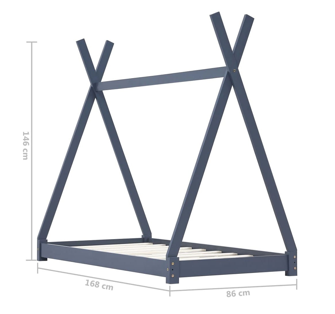 Drewniane szare łóżeczko dziecięce tipi 80x160 cm