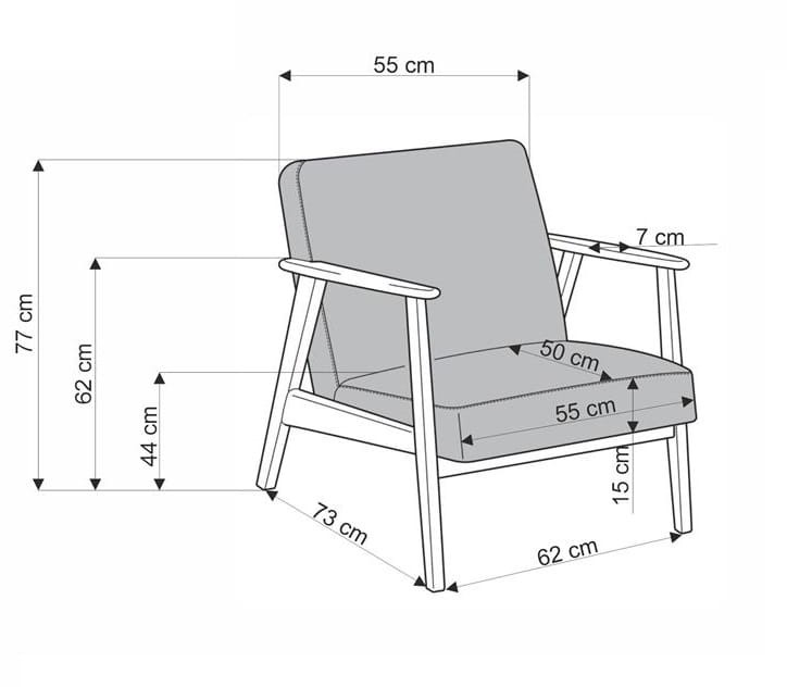 Jego klasyczna, ponadczasowa forma, połączona z dbałością o detale i wyjątkowym komfortem, sprawia, że fotel ten jest idealnym wyborem dla osób, które pragną wnieść do swojego domu nieco retro elegancji. To mebel, który zdobi, ale również zaprasza do chwili wytchnienia, oferując miejsce, gdzie tradycja spotyka się z nowoczesnością.