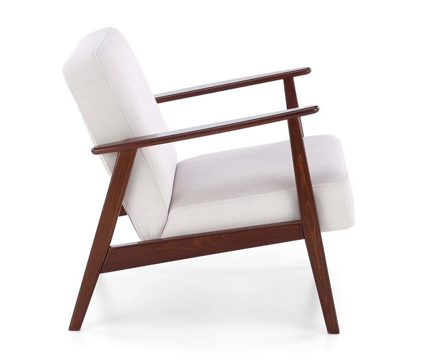 Fotel retro FOX to siedzisko, które łączy w sobie tradycyjny design z nowoczesną funkcjonalnością. Jego drewniane, orzechowe nóżki dodają ciepła i naturalności, idealnie korespondując się z jasnobeżową tapicerką wykonaną z wysokiej jakości tkaniny. Fotel ten, choć inspirowany stylem retro, został zaprojektowany z myślą o współczesnych użytkownikach, oferując im komfort na najwyższym poziomie. Szerokie, ergonomicznie wyprofilowane siedzisko, jak i miękkie oparcie zapewniają wygodę podczas upojnych chwil relaksu, czy to przy książce, czy podczas wieczornych spotkań z rodziną lub z przyjaciółmi. Starannie dobrane materiały oraz solidna konstrukcja gwarantują tutaj trwałość. Dzięki temu, nasz fotel retro z serii mebli FOX - będzie cieszył Państwa oko przez wiele lat, zachowując swój niepowtarzalny, historyczny urok.