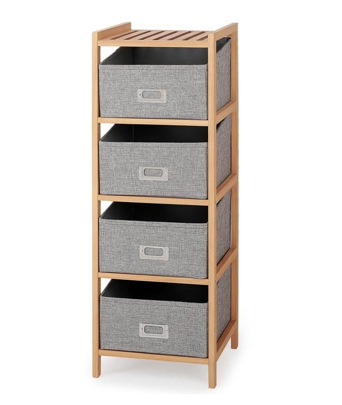 Nasz słupek wykonany jest z litego drewna wysokiej jakości, zapewnia mu to doskonałą stabilność i trwałość. Półki, które wypełnione są praktycznymi szufladami z tkaniny - gwarantują temu meblowi naprawdę sporą pojemność! Umożliwiają one przechowywanie i segregację! Można trzymać tu bibeloty, galanterię, bieliznę, zabawki albo kosmetyki. A gdy regał umiejscowiony jest w gabinecie - również dokumenty. Tak naprawdę zależy to od przeznaczenia i miejsca, w którym ma on spełniać swoje funkcje! A tutaj pomysłów można mieć naprawdę mnóstwo! To może być łazienka, przedpokój, garderoba, pokój dziecięcy... Niewielkich rozmiarów słupek stojący sprawdzi się wszędzie tam, gdzie należy wprowadzić ład! Niewielki mebel do zadań specjalnych!