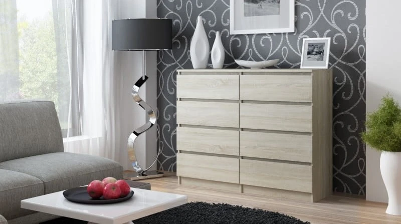 Duża komoda 8 szuflad 120cm dąb sonoma
