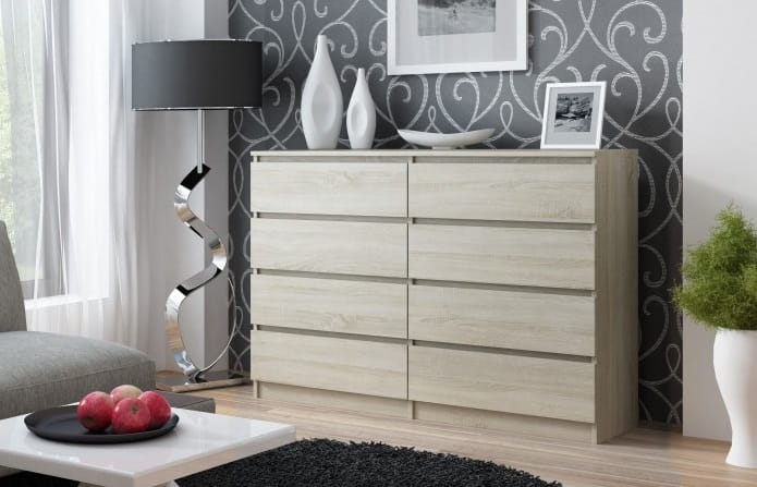 Duża komoda 8 szuflad dąb sonoma 140 cm