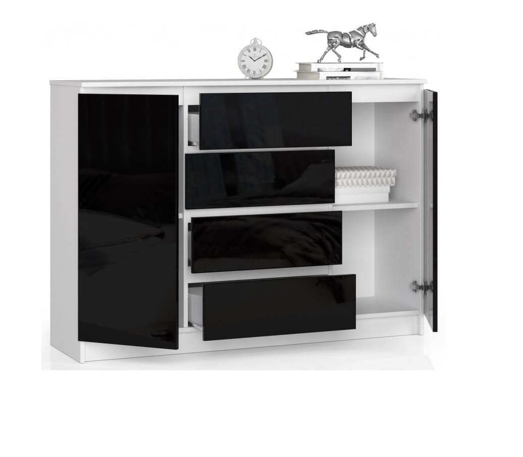 Komoda z szufladami i półkami biały/czarny połysk 140 cm