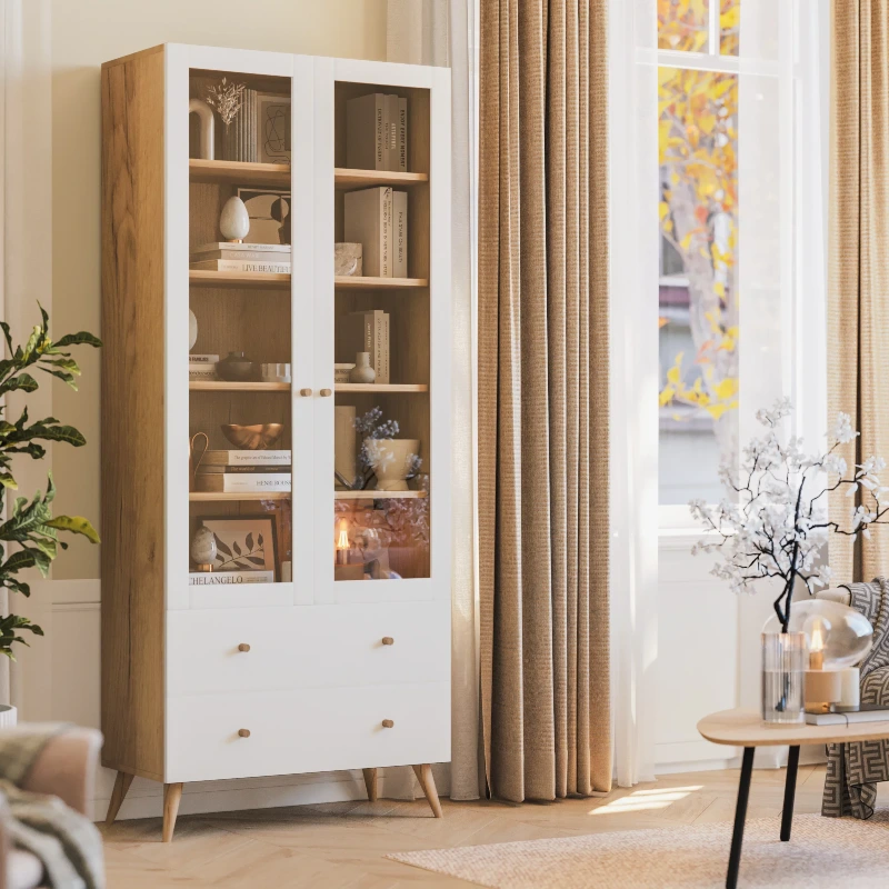 Wysoka witryna na nóżkach - funkcjonalność w stylu modern i skandi