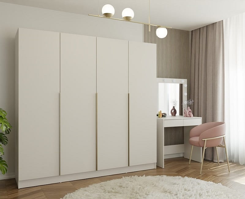 Duża szafa do sypialni kaszmir ze złotymi uchwytami
