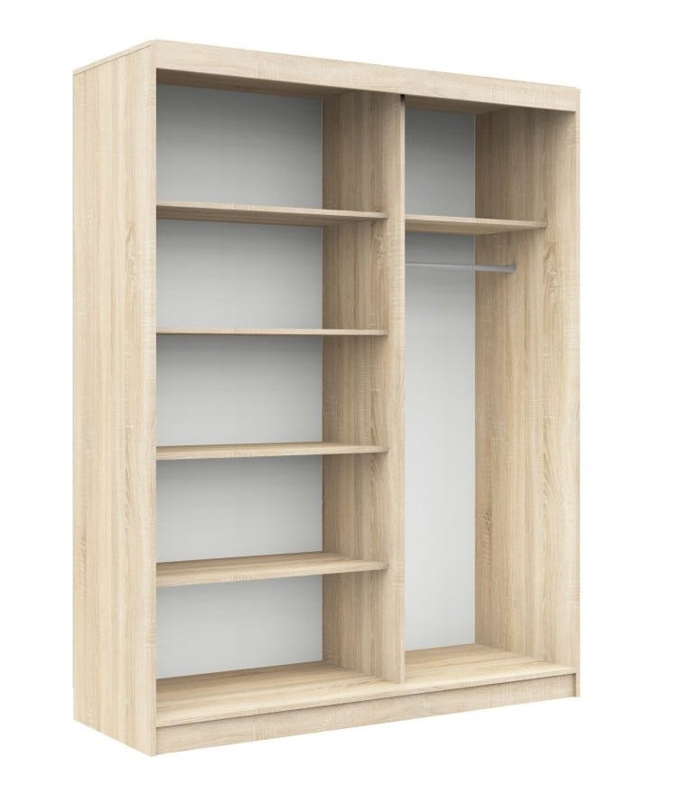 Szafa przesuwna Prowansja to niebagatelna powierzchnia do zagospodarowania! Zmieści się w niej cała garderoba! Posiada bowiem funkcjonalne półki, a także drążek, na którym wieszać można kurtki, płaszcze, sukienki i koszule. Na praktycznych półkach można segregować i układać ubrania, bieliznę oraz akcesoria. Oczywiście taką szafę można umieścić także w salonie, a nawet w łazience! Tu posłuży jako miejsce do przechowywania szlafroków, ręczników łazienkowych i pościeli.