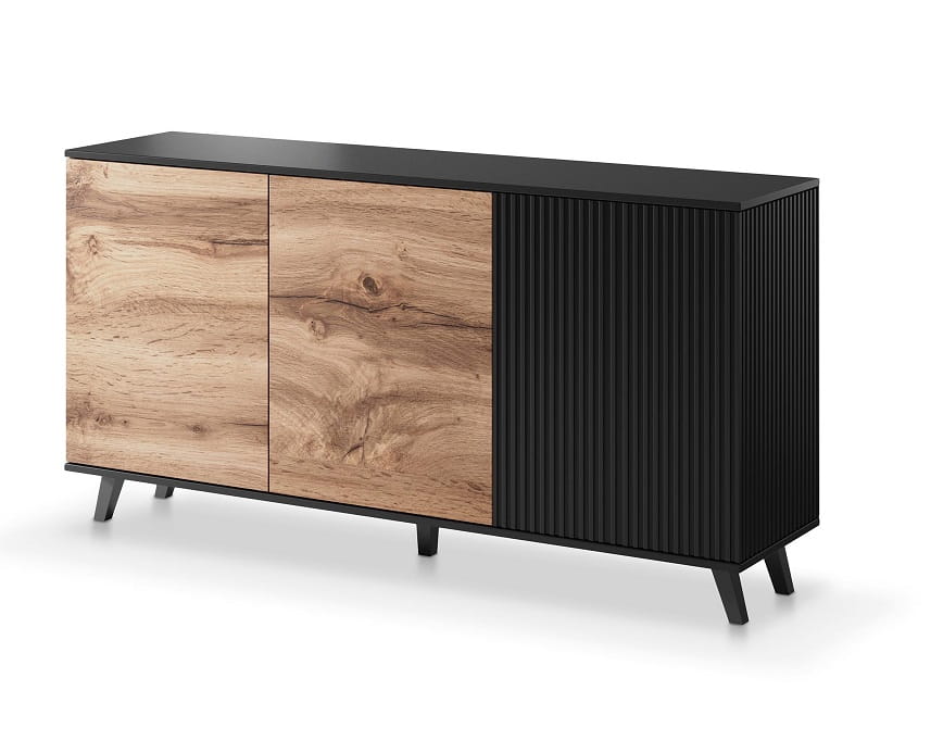 - Kolor: dąb wotan / czarny (ryflowane fronty)